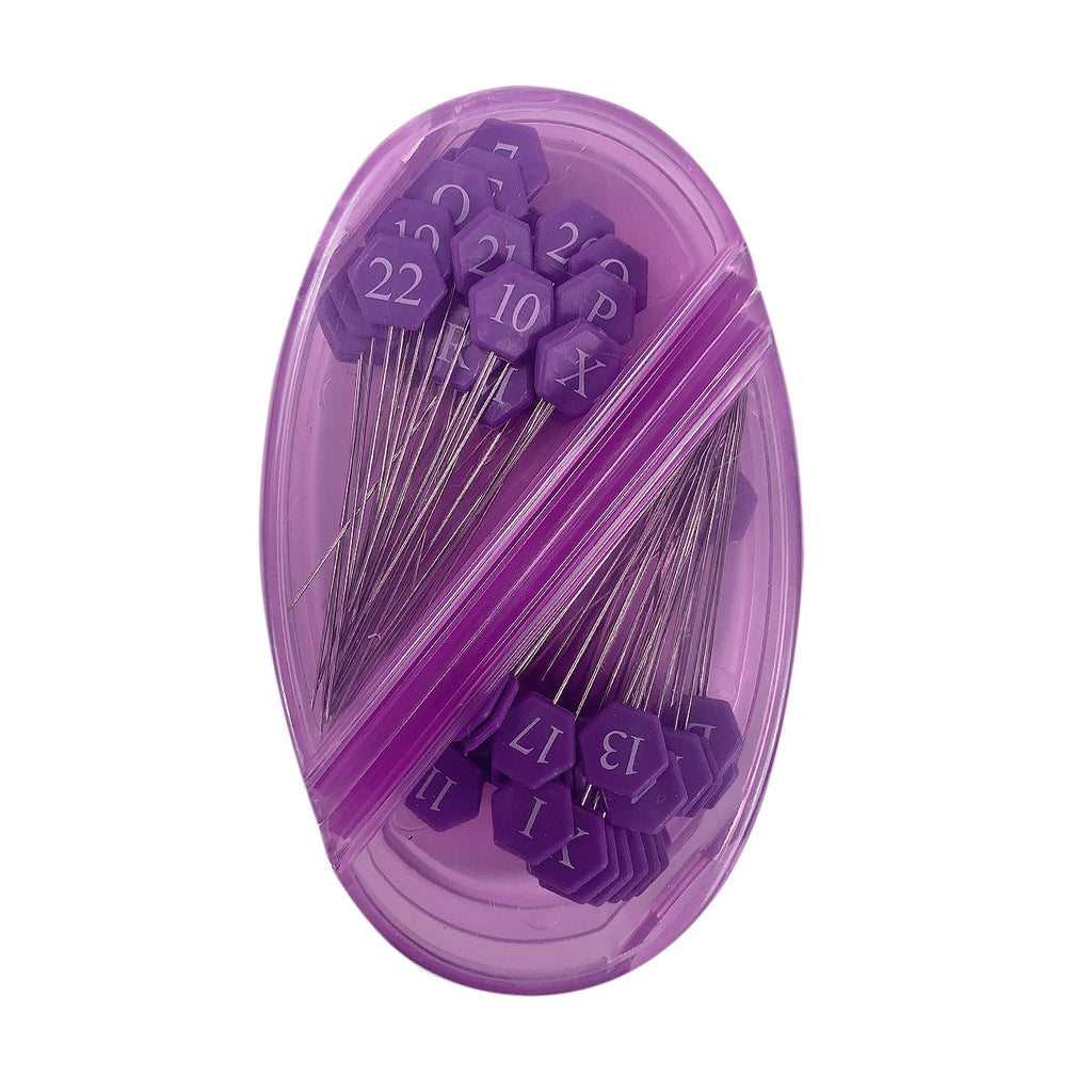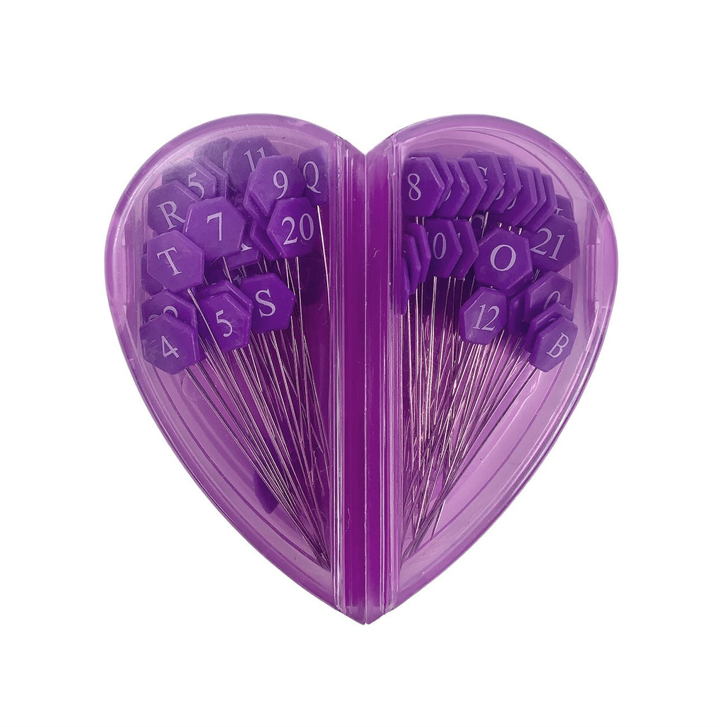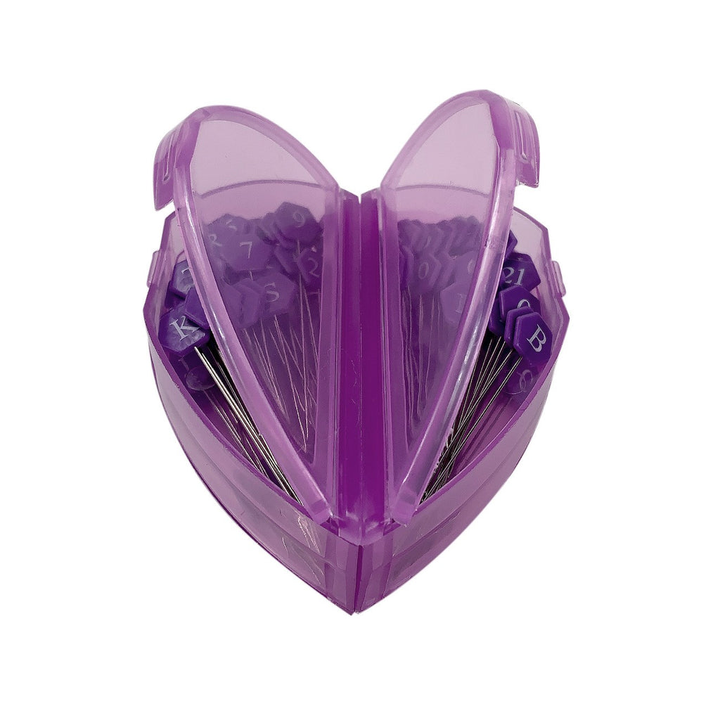 104 hexagon shaped Cool Pins come in a reusable storage box. The pins are numbered (0-25) on one side and lettered (A-Z) on the other,