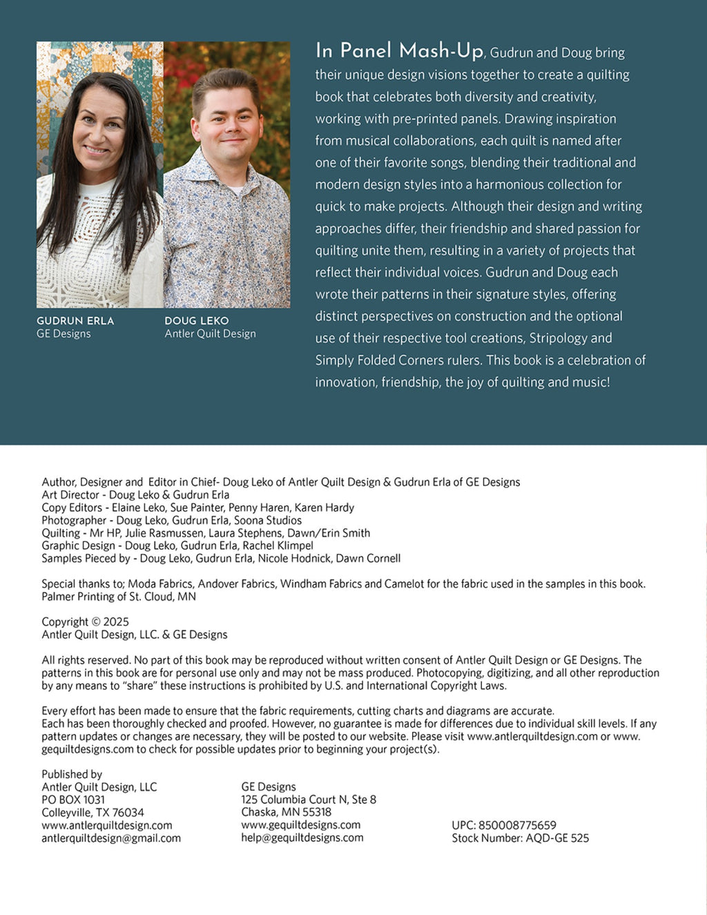 Panel Mash-Up is a brand-new book packed with creative ways to turn fabric panels into dynamic quilts. Co-authored by quilting besties, Gudrun Erla of GE Designs and Doug Leko of Antler Quilt Design, this book features quilt patterns that are fresh, fun, and easy to personalize.